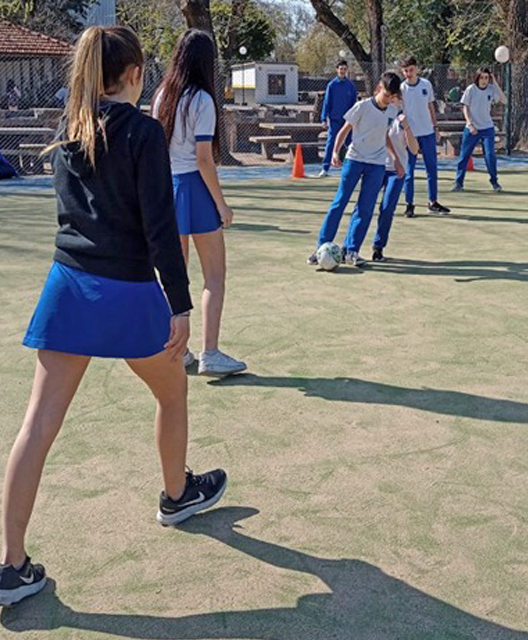 En Educación Física, la pandemia trajo algunos cambios significativos. Antes de ella, al momento de trabajar, los cursos debían ser separados en grupos masculinos y femeninos. Mientras se desarrollaba —y con la paulatina vuelta a la presencialidad— la estrategia de las “burbujas” se tradujo en grupos reducidos y mixtos. Finalmente, con la pospandemia, se generó un cambio de paradigma, ya que el Ministerio de Educación otorgó a las instituciones educativas la posibilidad de continuar conformando grupos mixtos para la actividad deportiva.