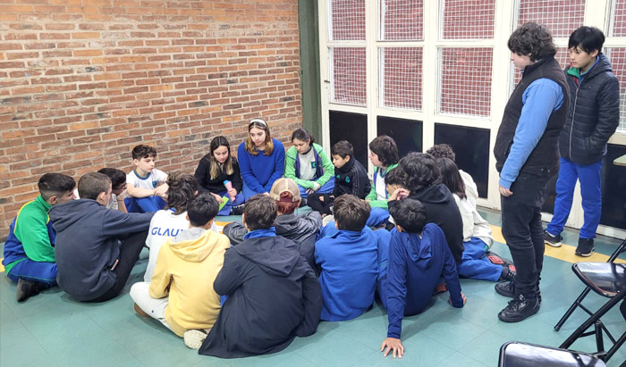 Concretamente, nuestra idea se basaba en identificar temáticas y problemáticas de interés para los alumnos de 4º año y realizar, junto con ellos, actividades que les sirvieran para trabajar sobre las mismas y ampliar sus conocimientos. Para esto, en un primer momento, conversamos con los estudiantes acerca de los posibles temas y ellos completaron algunas encuestas. Así, con los resultados obtenidos, diseñamos tres talleres participativos que tuvieron como objetivo trabajar, a partir de diferentes actividades, alrededor de las principales temáticas que habían surgido: los derechos del adolescente, la sexualidad, la salud mental y el consumo de alcohol.