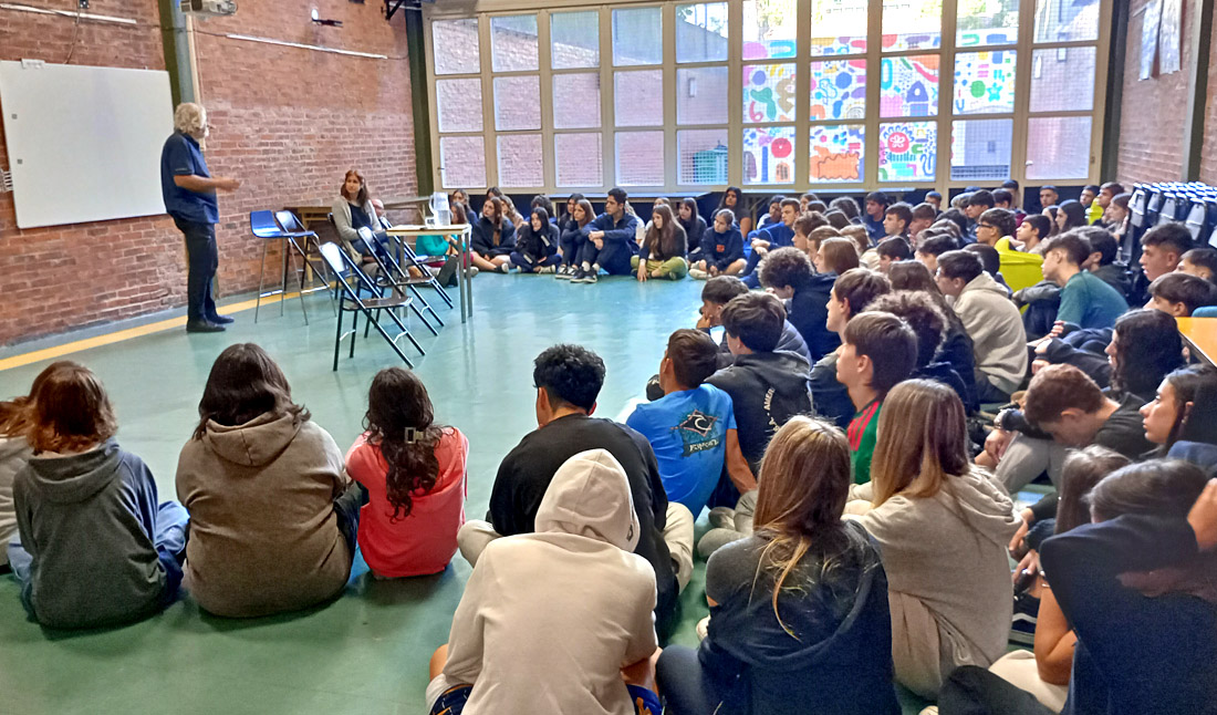 “Sentí miedo cuando peleé en Malvinas, pero mucho orgullo también”. “Si es cierto que existe el infierno, yo ya lo conocí”. “Malvinas fue un curso exprés de antiimperialismo”. “Para muchos de nosotros, los héroes son los que están muertos, los que quedaron en Puerto Darwin”. Estas son algunas de las reflexiones que Gustavo Pirich, combatiente en la Guerra de Malvinas, compartió con las y los estudiantes de 3° y 4° Año en el marco del Día del Veterano y de los Caídos.