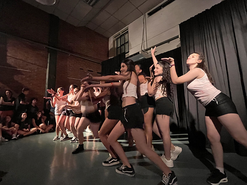 Finalmente, en el taller de Salsa y Ritmos Caribeños, tuvimos la particularidad de haber sido un grupo formado solo por mujeres. Durante el primer período, se conectaban con el propio cuerpo y la música, experimentando y coordinando con otras los movimientos propios de estos ritmos. Bailaron en parejas, pasando por el rol de conductoras y conducidas, y pensaron en una temática para el armado de la coreografía final, eligiendo los temas musicales, vestuario y armando ellas mismas secuencias que incorporaron a una hermosa pieza grupal.